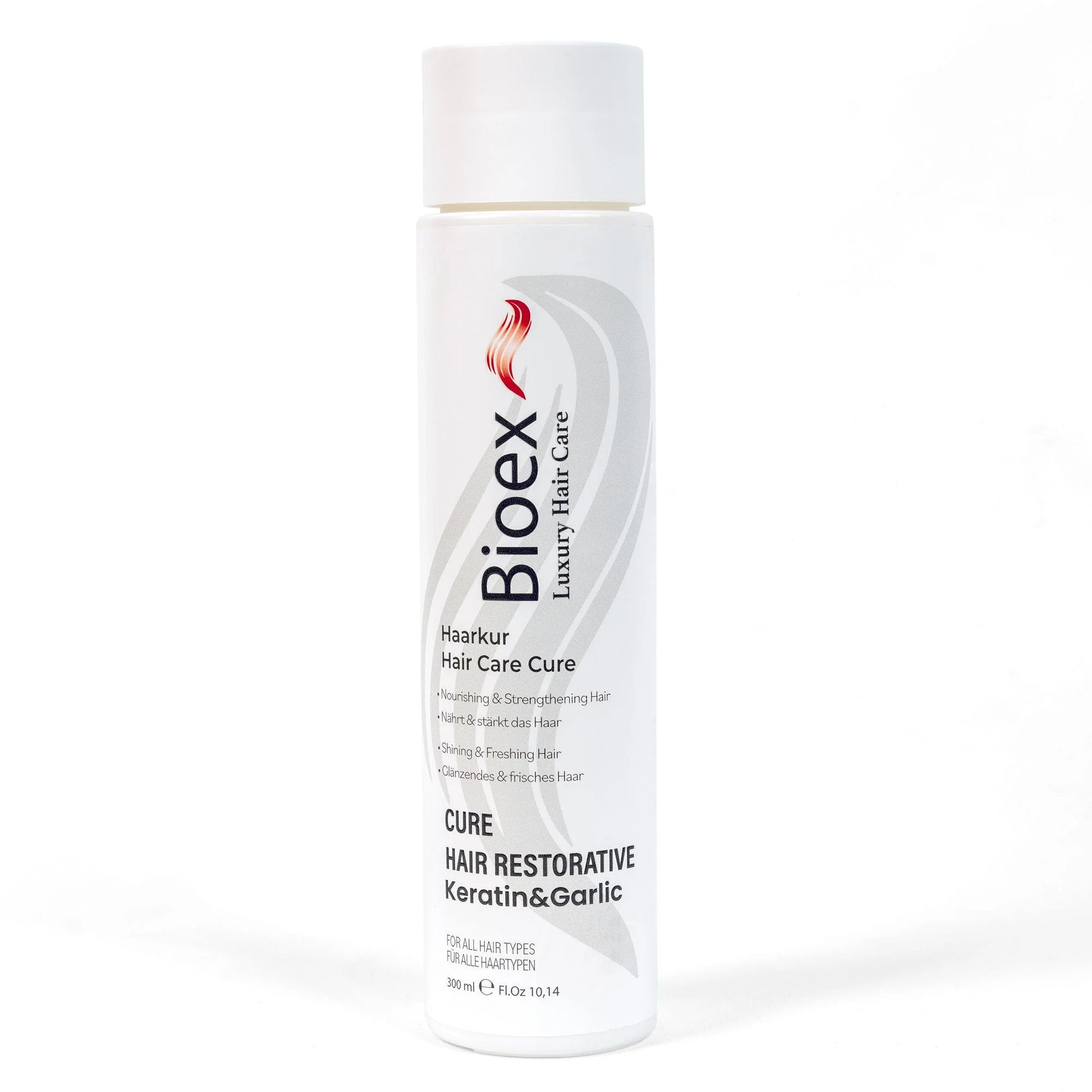 Unsere Bioex Haarpflegekur mit Keratin und Knoblauch nährt das Haar intensiv und verleiht ihm neuen Glanz. Die reichhaltige Formel unterstützt ein lebendiges, voluminöses Erscheinungsbild und ist speziell für schwaches, feines, geschädigtes sowie dauergewelltes, gefärbtes, gesträhntes und behandeltes Haar entwickelt.