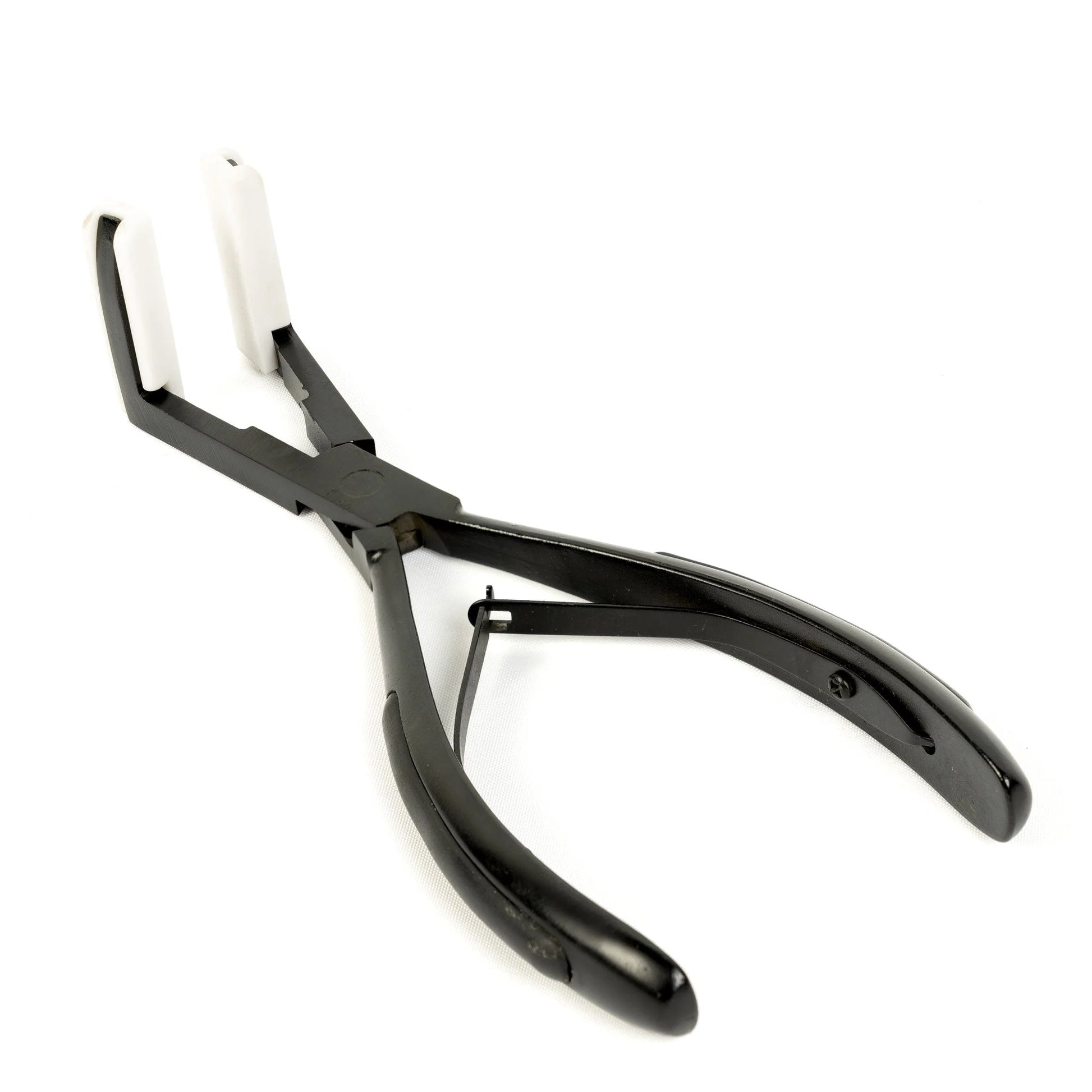 Werkzeug für professionelle Friseure und Hair-Stylisten, die Tape-In Extensions präzise und sicher anbringen möchten. Gefertigt aus robustem, langlebigem Edelstahl bietet die Zange eine optimale Kraftübertragung bei minimalem Kraftaufwand und sorgt so für eine gleichmäßige und sichere Fixierung der Tape-Strips.